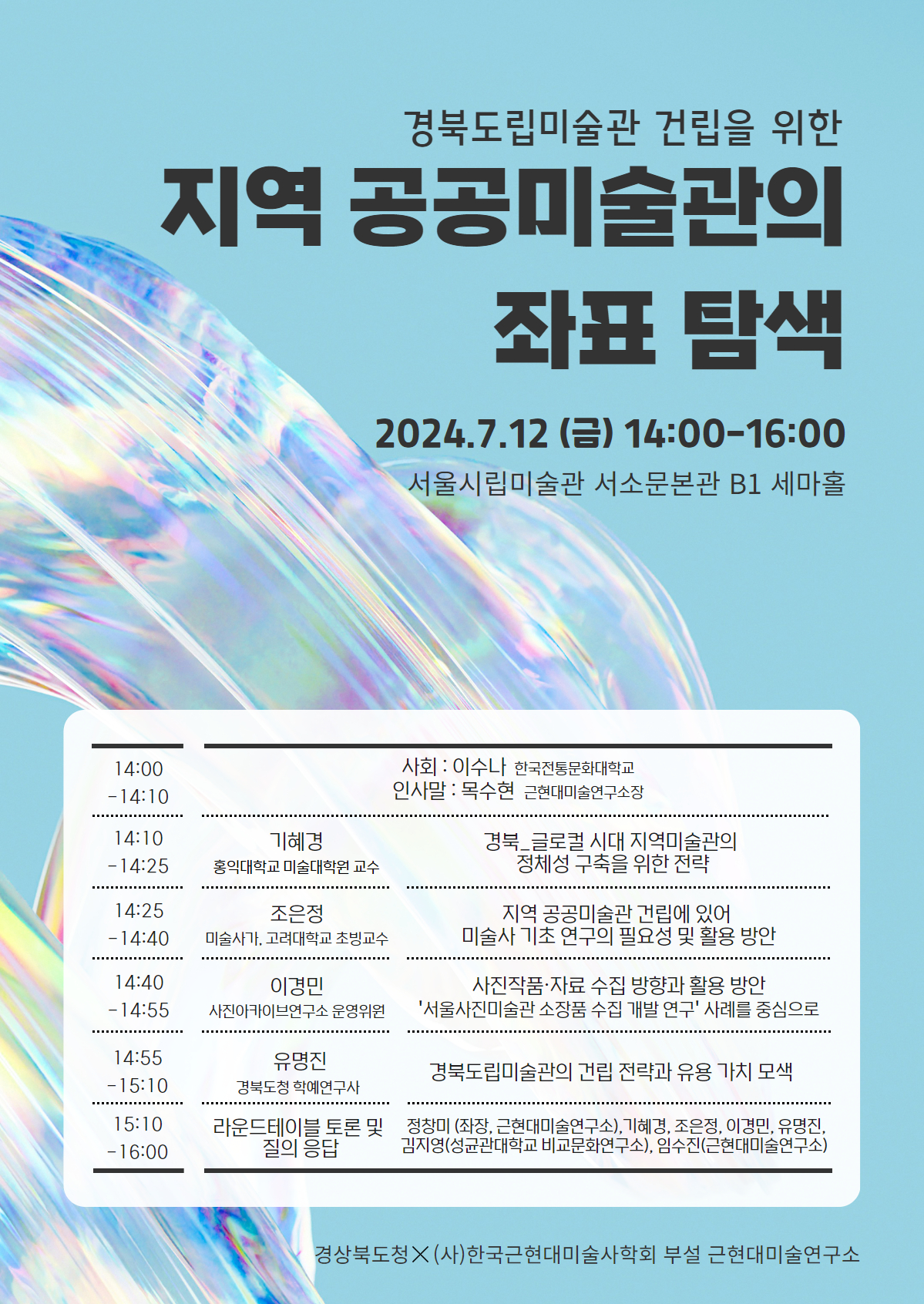 학회 회원 및 관련 분야 연구자, 그리고 지역 공공미술관에 관심 있는 분들의 많은 참여 부탁드립니다.